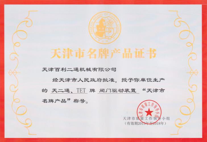 閥門(mén)驅(qū)動(dòng)裝置名牌產(chǎn)品證書(shū)