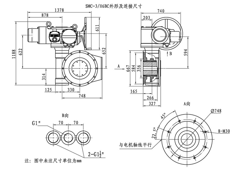 SMC/HBC系列電動裝置是SMC系列多回轉電動裝置與HBC蝸輪減速器的組合型式,它適合球閥、蝶閥等部分回轉閥門的驅動控制。SMC/HBC電動裝置具有以下特點:結構設計堅固可靠,產品規格齊全,驅動轉矩范圍大且動力輸出穩定, 具有良好的自鎖性能。 HBC輸出軸結構獨特,裝有與閥桿連接的漸開線花鍵接頭,產品的安裝調試方便。