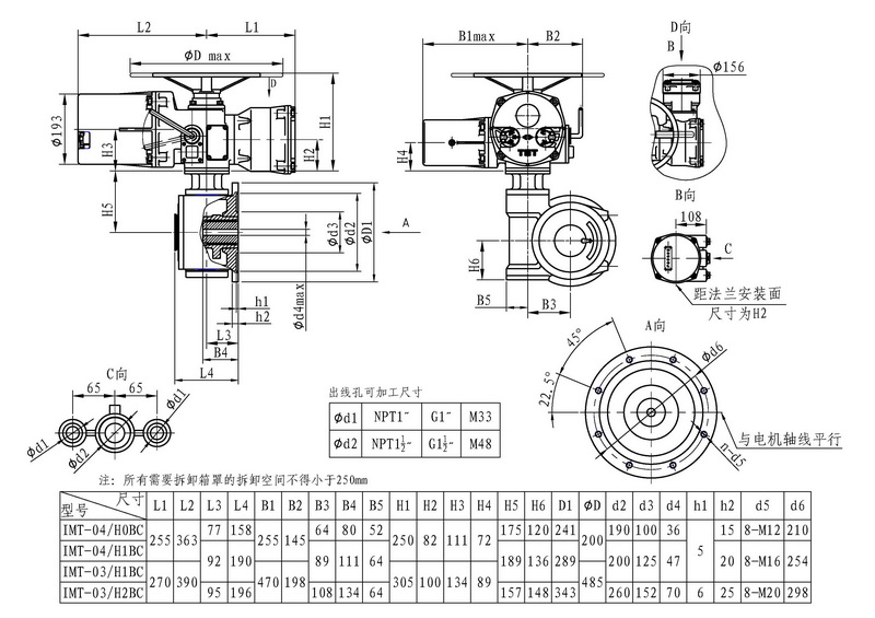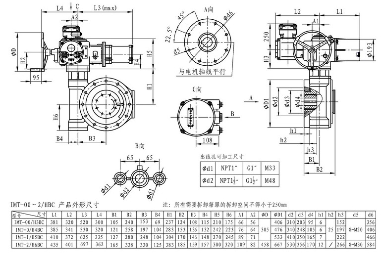 IMT/HBC系列智能型電動裝置是IMT系列多回轉智能型電動裝置與HBC蝸輪減速器的組合型式,它適合球閥、蝶閥等部分回轉閥門的驅動控制。 IMT/HBC智能型電動裝置具有以下特點:結構設計堅固可靠,產品規格齊全,驅動轉矩范圍大且動力輸出穩定, 具有良好的自鎖性能。 HBC輸出軸結構獨特,裝有與閥桿連接的漸開線花鍵接頭,產品的安裝調試方便。
