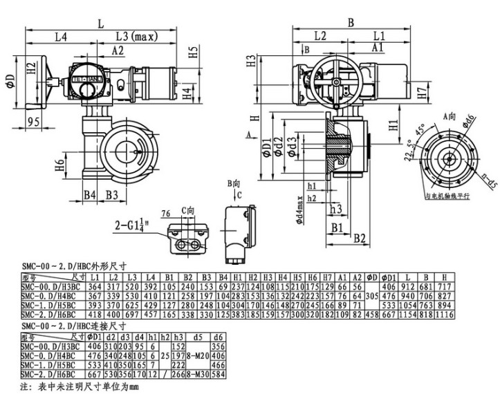 SMC/HBC系列電動裝置是SMC系列多回轉(zhuǎn)電動裝置與HBC蝸輪減速器的組合型式,它適合球閥、蝶閥等部分回轉(zhuǎn)閥門的驅(qū)動控制。SMC/HBC電動裝置具有以下特點:結(jié)構(gòu)設(shè)計堅固可靠,產(chǎn)品規(guī)格齊全,驅(qū)動轉(zhuǎn)矩范圍大且動力輸出穩(wěn)定, 具有良好的自鎖性能。 HBC輸出軸結(jié)構(gòu)獨特,裝有與閥桿連接的漸開線花鍵接頭,產(chǎn)品的安裝調(diào)試方便。