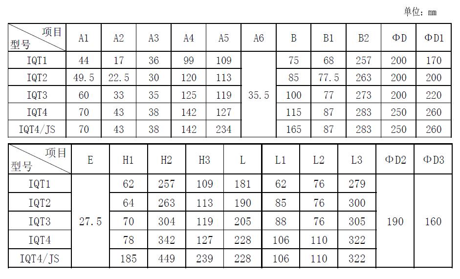 IQT1~I(xiàn)QT4/JS(220V單相電機(jī))系列技術(shù)參數(shù)表