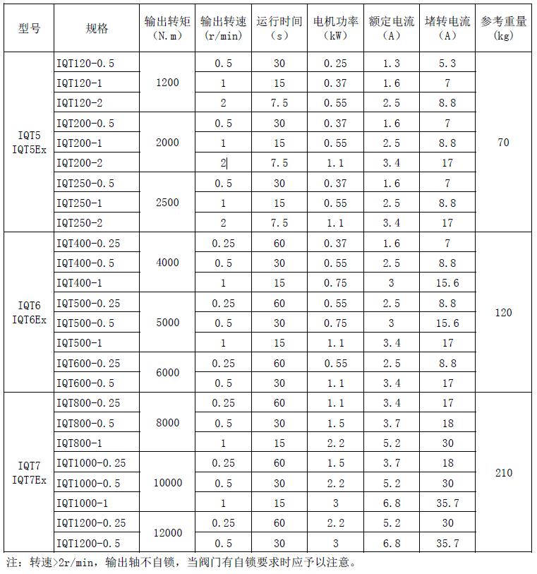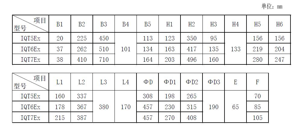 IQT5~I(xiàn)QT7系列技術(shù)參數(shù)表