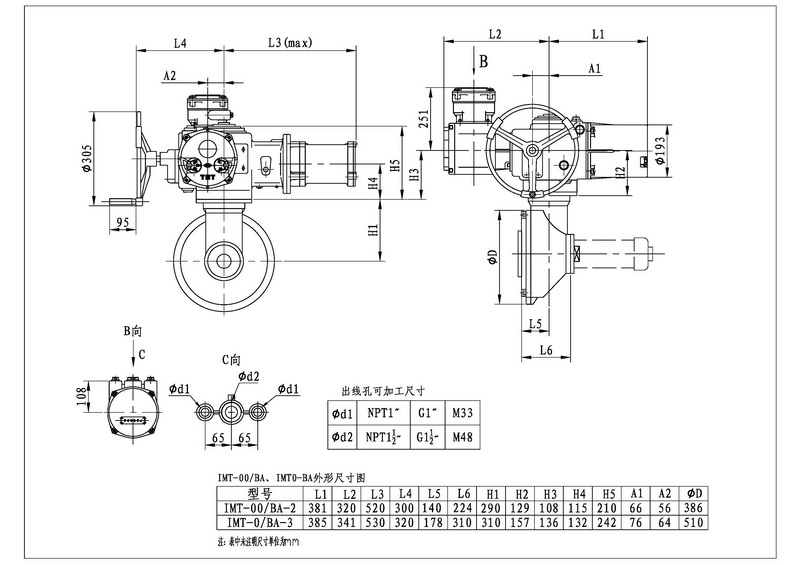 IMT/BA系列智能型電動裝置是IMT系列中小轉(zhuǎn)矩多回轉(zhuǎn)智能型電動裝置與BA圓錐齒輪減速器的一種組合型式,它適合閘閥、截止閥等多回轉(zhuǎn)閥門的驅(qū)動控制。IMT/BA智能型電動裝置具有以下特點(diǎn):以較小轉(zhuǎn)矩規(guī)格的IMT電動裝置與BA減速器組合可獲得更大的輸出轉(zhuǎn)矩。在輸出轉(zhuǎn)速允許的條件下,選用該產(chǎn)品能夠提高所選電動裝置規(guī)格的通用性,便于產(chǎn)品的使用、維護(hù)。