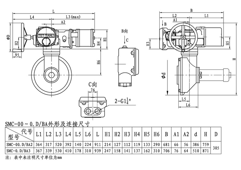 SMC/BA系列電動裝置是SMC系列中小轉矩多回轉電動裝置與BA圓錐齒輪減速器的一種組合型式,它適合閘閥、截止閥等多回轉閥門的驅動控制。SMC/BA電動裝置具有以下特點:以較小轉矩規格的SMC電動裝置與BA減速器組合可獲得更大的輸出轉矩。在輸出轉速允許的條件下,選用該產品能夠提高所選電動裝置規格的通用性,便于產品的使用、維護。
